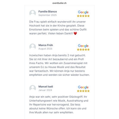 • Sie wählen die Musik, ich liefere eine professionelle Umsetzung: Barock, Klassik, Pop oder Crossover – alles ist möglich. Gerne